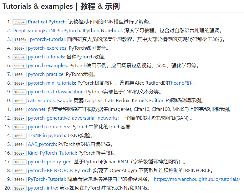 超赞的PyTorch资源大列表,GitHub标星9k+,中文版也上线了