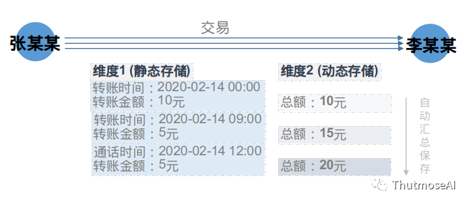 动态图谱统计历史账单总金额方法:数据产生后发生存储即实时自动汇总,及时查询得出20元。