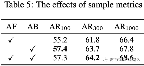 Sample Discrimination Metrics. Table5展示了采用标准的性能测试,从结果看来,单独使用anchor-free或anchor-based标准是不完美的,同时使用能带来很好的效果