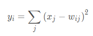 也就是说:每个输入RBF单元计算输入向量和参数向量之间的欧氏距离。输入离参数向量越远,RBF输出越大。一个RBF输出可以理解为衡量输入模式和RBF相关联的一个模型的匹配程度的惩罚项。给定一个输入模式,损失函数应该能使F6的配置和RBF参数向量(模式的期望分类)足够接近。假设x是上一层的输入,y是RBF的输出,则RBF输出的计算方式是: