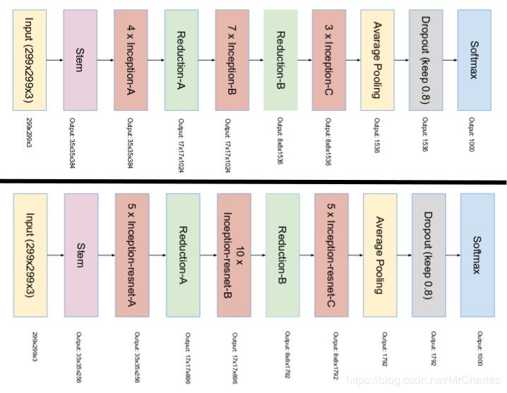 Inception v4和Inception-ResNet的最终网络布局如下: