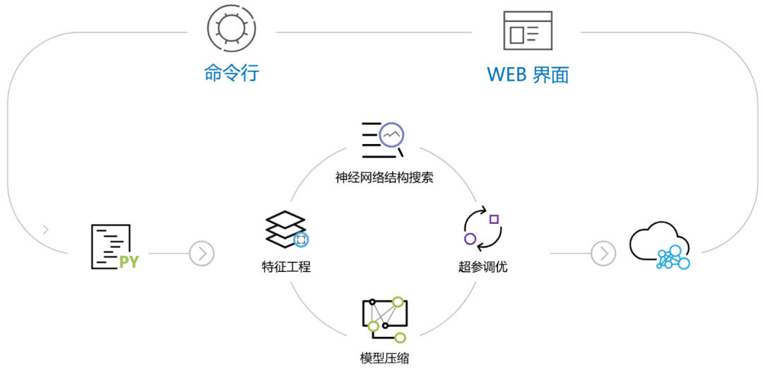 • 支持机器学习生命周期中的多环节:特征工程、神经网络架构搜索(NAS)、超参调优和模型压缩等;