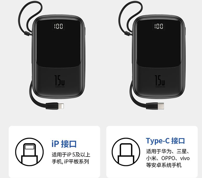 自带数据线的迷你数显充电宝,旅途必备