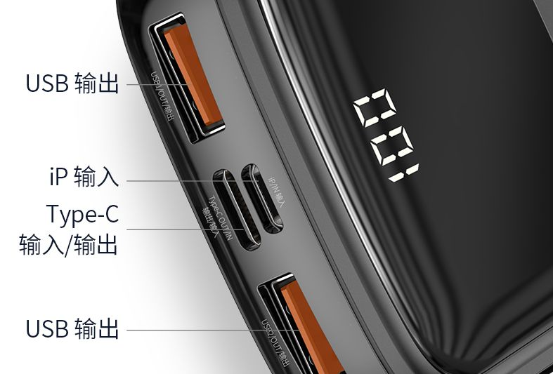 移动电源配备了LED 数字屏,让你轻松精确掌握剩余电量。