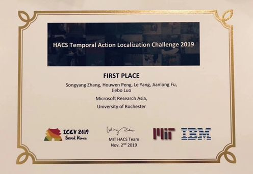 3.Songyang Zhang, Houwen Peng, Le Yang, Jianlong Fu and Jiebo Luo, “Learning Sparse 2D Temporal Adjacent Networks for Temporal Action Localization”, Technical Report