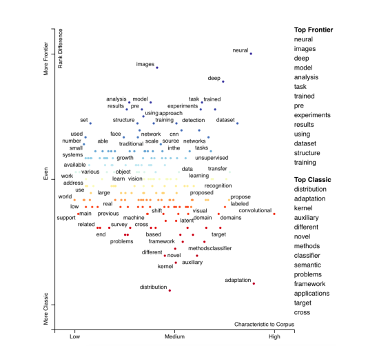 图12:在迁移学习上下文中对“前沿”术语与“经典”术语的可视化分析