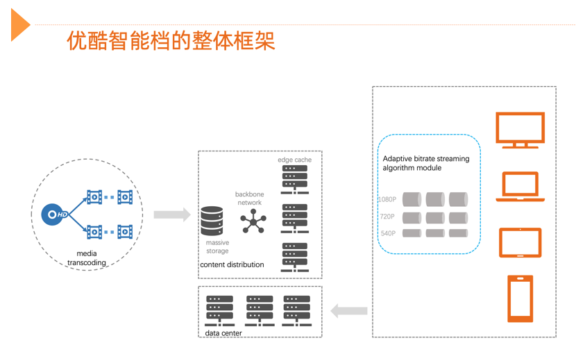优酷智能档技术,即自适应码率播放技术。一方面是一个比较新的探索尝试:因为优酷在这方面的投入是国内比较前沿的,是大规模进行产品化落地的流媒体服务公司;另一方面这个技术本身比较老了,大约从2000年就开始形成比较完整的理念和框架体系,并成为流媒体传输领域的标准产品技术形态,在Netflix、YouTube已经大规模应用。自适应码率播放技术不仅是国外的工业界应用很成熟,学术界研究也很成熟,有的同学本科生研究生阶段在流媒体领域也很有可能做过相关的技术研究工作。