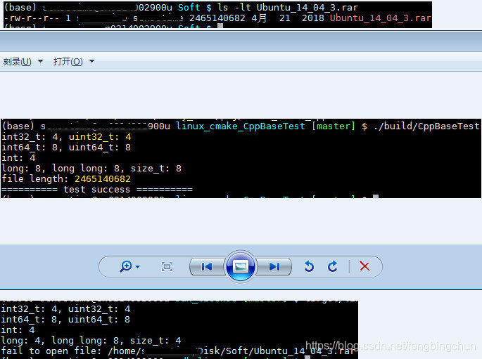在linux上,当文件大于2G时,在32位上,调用fopen函数会直接返回空。执行结果如下图所示:以Ubuntu_14_04_3.rar为例,第1个窗口显示的是此文件的真实值大小;第2窗口为64位上的执行结果,可见与真实值大小一致;第3个窗口为32位上执行结果,大于2G文件,在32位上不能正常调用fopen函数。