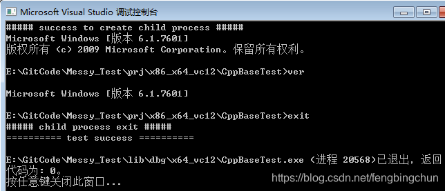 {char filename[MAX_PATH];auto size = GetModuleFileName(nullptr, filename, MAX_PATH);if (size == 0) {fprintf(stderr, "fail to GetModuleFileName\n");return -1;}// reference: https://docs.microsoft.com/en-us/windows/win32/procthread/creating-processesSTARTUPINFO si;PROCESS_INFORMATION pi;ZeroMemory(&si, sizeof(si));si.cb = sizeof(si);ZeroMemory(&pi, sizeof(pi));char argument[512];//sprintf(argument, "\"%s\" C:\\windows\\system32\\cmd.exe", filename);sprintf(argument, "C:\\windows\\system32\\cmd.exe");// Start the child process. if (!CreateProcess(nullptr,argument, // Command linenullptr, // Process handle not inheritablenullptr, // Thread handle not inheritablefalse, // Set handle inheritance to FALSE0, // No creation flagsnullptr, // Use parent's environment blocknullptr, // Use parent's starting directory &si, // Pointer to STARTUPINFO structure&pi) // Pointer to PROCESS_INFORMATION structure) {fprintf(stderr, "fail to CreateProcess: %d\n", GetLastError());return -1;}fprintf(stdout, "##### success to create child process #####\n");// Wait until child process exits.WaitForSingleObject(pi.hProcess, INFINITE);fprintf(stdout, "##### child process exit #####\n");// Close process and thread handles. CloseHandle(pi.hProcess);CloseHandle(pi.hThread);return 0;