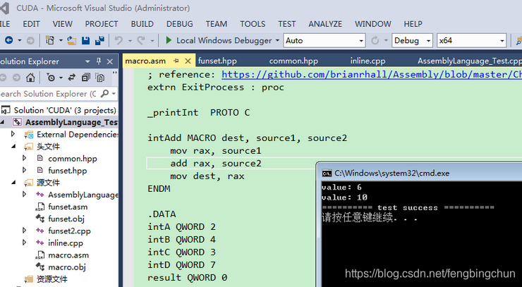 macro_usage:push rbp ; set up stack frame, must be allignedintAdd result, intA, intBmov rdi, qword [result]mov rax, 0 ; or can be xor rax, rax, no vector registers in usecall _printIntintAdd result, intC, intDmov rdi, qword [result]mov rax, 0call _printIntpop rbp ; restore stackmov rax, 0 ; normal exit, no error, return valueret ; return to operating system执行结果如下图所示: