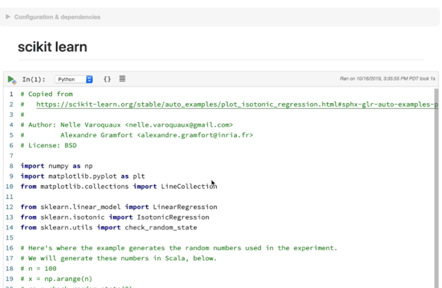通过跟踪每个单元中定义的变量,Polynote 会根据在其上方运行的单元来构造给定单元的输入状态。因此,单元格的位置在 Polynote 的执行语义中很重要,从而使用户可以从上至下地阅读 notebook 。