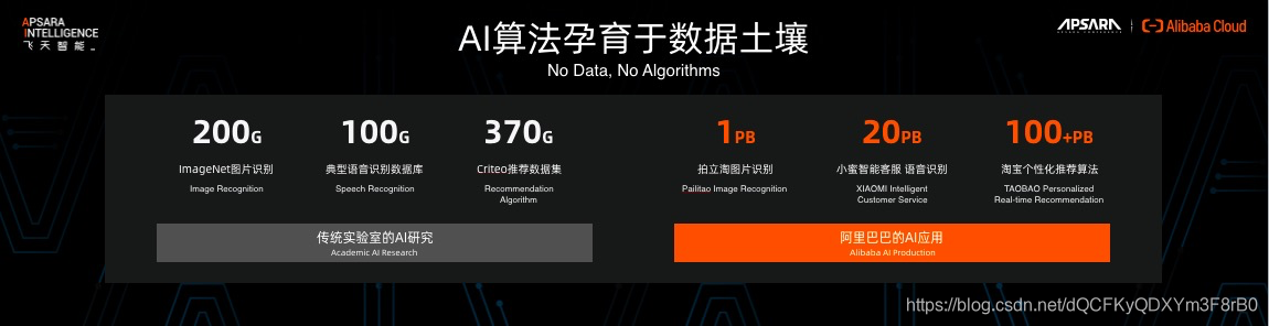 飞天大数据平台和飞天 AI 平台之间是一种“共生”的关系。AI 的爆发是数据和算力驱动的,没有数据就没有这次 AI 的爆发。大的算法门类,如深度学习、神经网络其实 20 年前就有了,但是在如今大爆发,就是因为数据的增长和算力的提高。所以,AI 是离不开数据的,并且往往数据在 AI 的创新中至关重要,而积累的数据没有 AI 的分析和提纯就没有价值。