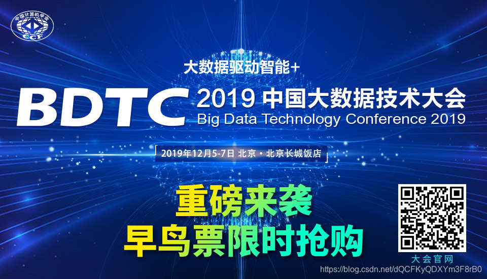限时早鸟票 | 2019 中国大数据技术大会(BDTC)超豪华盛宴抢先看!