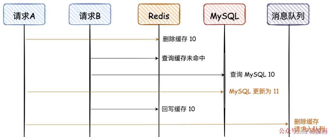 橘黄色的文字,是 MySQL 和 Redis 最终不一致的数据;