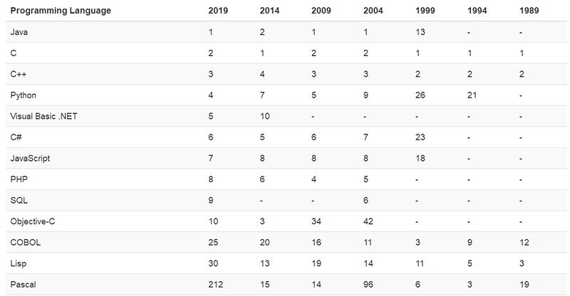 日前,TIOBE 编程语言社区最新发布了 2019 年 5 月排行榜。