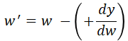 当w大于0时,MSE的导数 dy/dw 值为正。dy/dw 为正的原因可以解释为,w中的正方向变化将导致y的正方向变化。为了减少损失值,需要在w的负方向上进行如下变换: