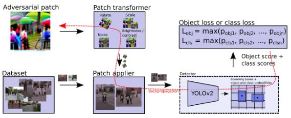 在过去几年中,机器学习中的对抗攻击方向吸引了越来越多的研究者。仅需要对卷积神经网络的输入进行细微的改变,模型就会被扰动,然后输出完全不同的结果。一种攻击方式是通过轻微改变输入图像的像素值来欺骗分类器,使其输出错误的类。其他的方法则是试图学习一个“补丁” (patches),这个补丁可以应用于某个对象去欺骗检测器和分类器。其中的一些方法的确成功地欺骗了分类器和检测器,这种欺骗性攻击在现实生活中也是可行的。但是,现有方法都是针对几乎没有类内变化的目标(例如停止标志)。对于此类目标,常用的方法为使用对象的已知结构在其上生成一个对抗性补丁。