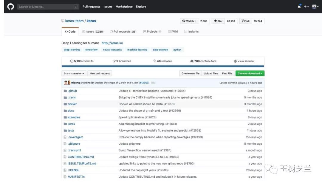 观察更新时间,tflearn 已经几个月没有动静;而 Keras 几个小时之前,还有更新。