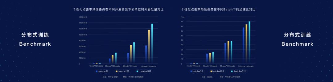 在CPU场景下进行基于个性化点击率预估任务场景测试,可以发现,不同并发资源下单位时间的吞吐量,不同的Batch Size下面加速比,都呈现线性的增长状态,可以直接应用到工业场景。
