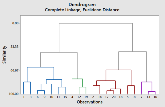 虽然与单链接类似,但其理念恰恰相反,它比较了一对集群中最不相似的数据点来进行合并。