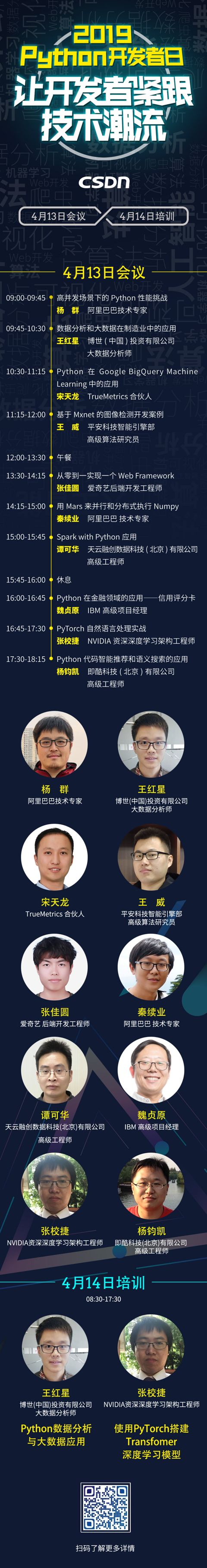 「2019 Python开发者日」演讲议题全揭晓!这一次我们依然“只讲技术,拒绝空谈”10余位一线Python技术专家共同打造一场硬核技术大会。更有深度培训实操环节,为开发者们带来更多深度实战机会。更多详细信息请咨询13581782348(微信同号)。