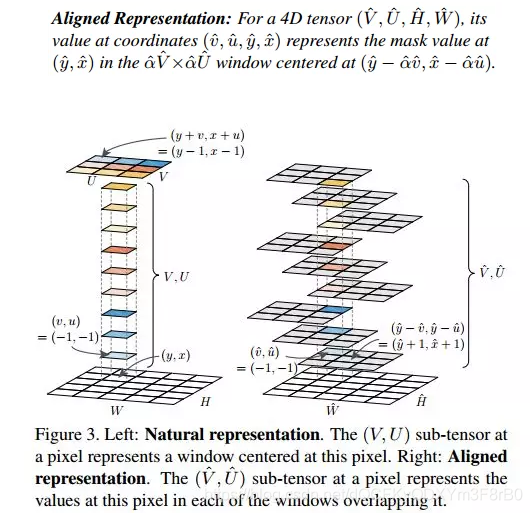 自然表示(Natural Representation):在点(y,x)处的滑窗内,某点的掩码值表示,如下截图所示,其中 alpha 表示 VU 和 HW 的单位长度比率。