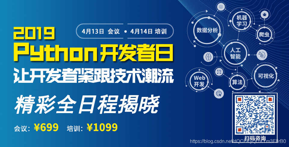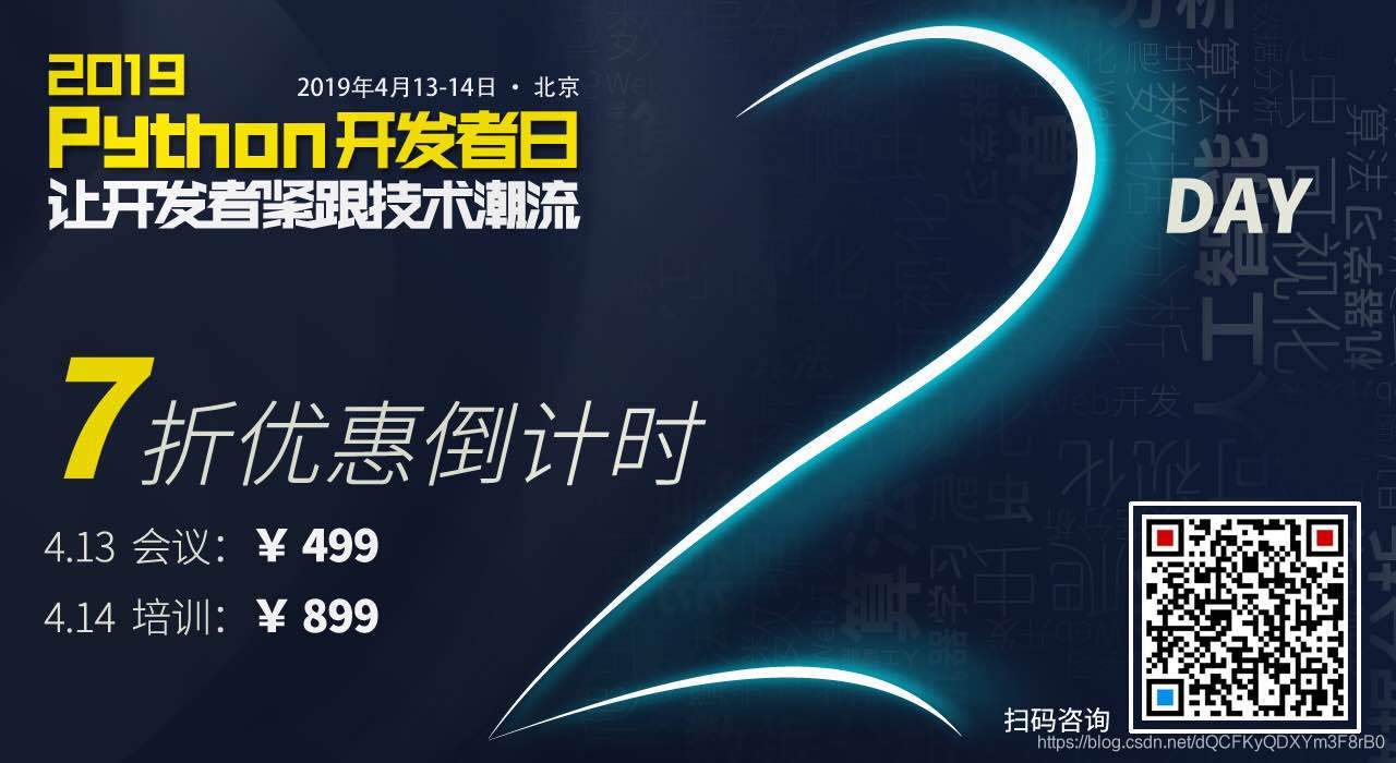 「2019 Python开发者日」7折优惠最后3天,请扫码咨询 ↑↑↑