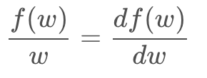 两个斜率一致的时候,w取值计算的E是最优的,即曲线f(w)上任意一点P和原点之间的直线与该点的切线共线! 的时候,该点P的w和t的取值为最优!