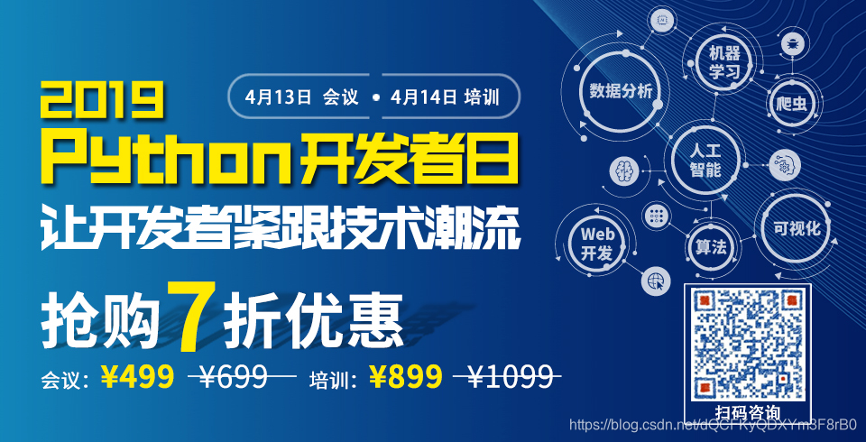 参加 2019 Python开发者日,请扫码咨询 ↑↑↑
