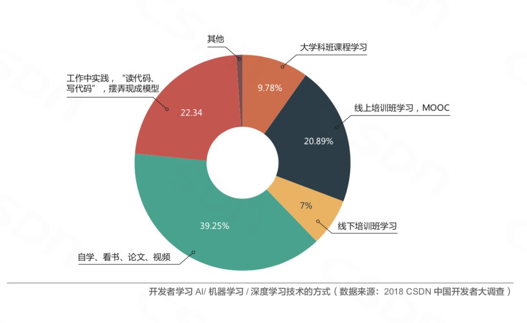 2. 自学是开发者学习 AI 技术的普遍方式,本科 AI 教育数据将增长