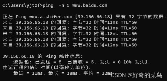 不间断的ping, 若要停止,请键入 Ctrl+C。