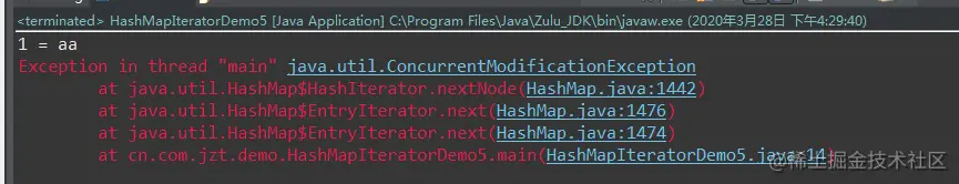 这就是验证了上面说的put操作可能会抛出java.util.ConcurrentModificationException异常。