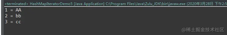 根据以上分析,我们知道HashMap底层是实现了Iterator迭代器的 ,那么理论上我们也是可以使用迭代器进行遍历的,这倒是不假,例如下面: