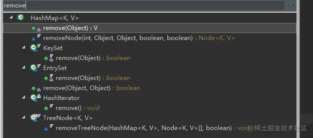 以上四种方式都通过调用HashMap.removeNode方法来实现删除key的操作。在removeNode方法内只要移除了key, modCount就会执行一次自增操作,此时modCount就与expectedModCount不一致了;