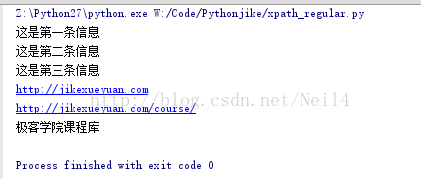 #-*-coding:utf8-*- from lxml import etree#首先将一下下面代码的困难之处,在html1中的body标签下的div标签里面,有三个id,且三个id不同 #这就是我们需要处理的第一类问题,以相同的字符开头的情况 html1 = ''' <!DOCTYPE html> <html> <head lang="en"><meta charset="UTF-8"><title></title> </head> <body><div id="test-1">需要的内容1</div><div id="test-2">需要的内容2</div><div id="testfault">需要的内容3</div> </body> </html> '''#在接下来的html2中出现标签套标签 html2 = ''' <!DOCTYPE html> <html> <head lang="en"><meta charset="UTF-8"><title></title> </head> <body><div id="test3">我左青龙,<span id="tiger">右白虎,<ul>上朱雀,<li>下玄武。</li></ul>老牛在当中,</span>龙头在胸口。</div> </body> </html> '''selector1 = etree.HTML(html1) #下面代码里面//div[starts-with(@id,"test")]/text()'注意讲到的一个新用法,这里的意思是,标签id中以“test”开头的所有标签都会被提取出来 #运行的结果是“需要的内容1,需要的内容2,需要的内容3” content1 = selector1.xpath('//div[starts-with(@id,"test")]/text()') for each in content1:print each#下面的代码是标签套标签的错误使用,就是我们利用上一章节的使用方法 #直接提取div[@id="test3"],运行的结果是只能提取div里面的内容,而div里面嵌套的标签的内容无法提取 #运行的结果是“我左青龙 龙头在胸口”,这显然不是我们想要的内容 selector2 = etree.HTML(html2) content_2 = selector2.xpath('//div[@id="test3"]/text()') for each in content_2:print each#下面的内容就是我们提取的完整的内容 #我们这里的思想还是先大后小的思想,我们先提取div下面的所有的内容 #然后直接使用info = data.xpath('string(.)'),但是注意的是这一句执行的结果会把换行,空格都给提取出来 #所以我们需要使用替换,把换行符合空格符全部替换掉 #运行的结果是我左青龙,右白虎,上朱雀,下玄武。老牛在当中,龙头在胸口。 selector3 = etree.HTML(html2) data = selector3.xpath('//div[@id="test3"]')[0] info = data.xpath('string(.)') content_3 = info.replace('\n','').replace(' ','') print content_3