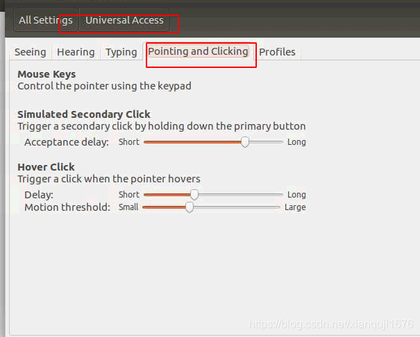 ubuntu 默认鼠标双击问题 内容: 选择 universalAccess ->Typing ubuntu 16.04 ubuntu 18.04 关闭鼠标悬停 点击 点击测试
