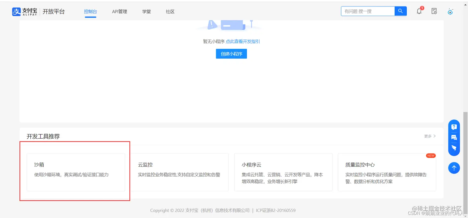 1.进入支付宝开发平台—沙箱环境