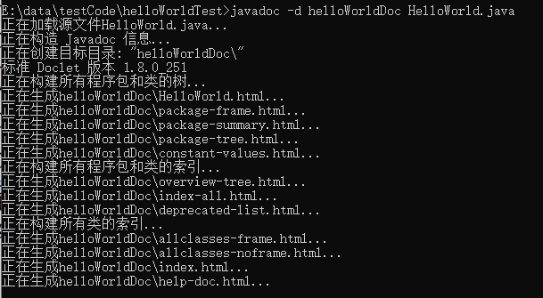 javadoc -d helloWorldDoc HelloWorld.java注: