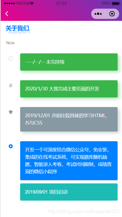 微信小程序使用的前端代码为此地址:https://github.com/huyande/Wapp