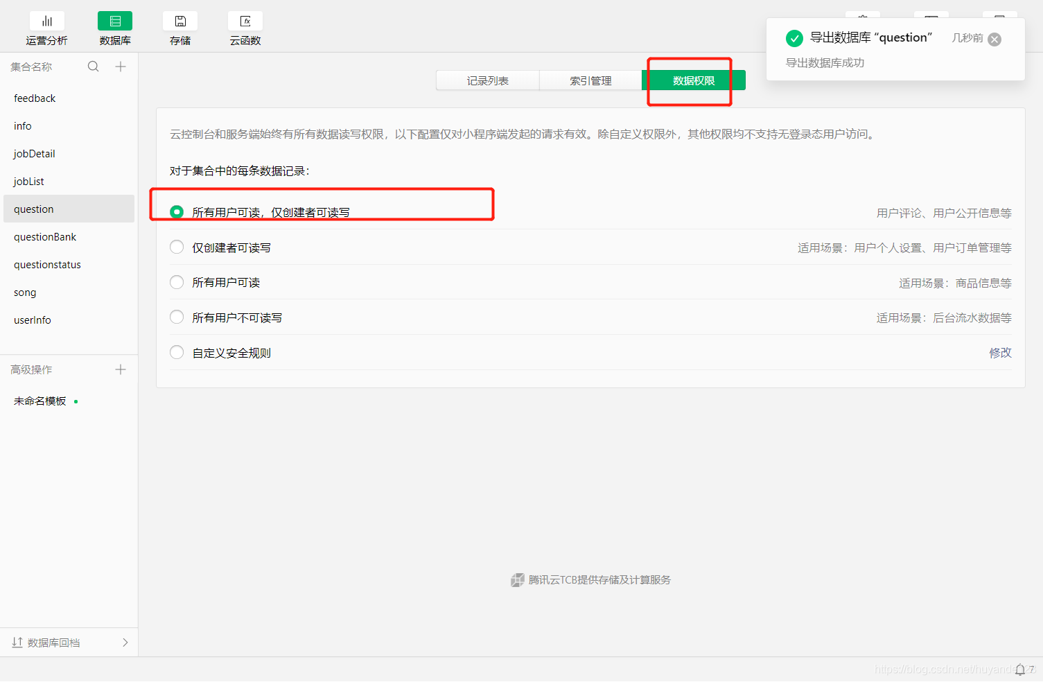 创建集合:question、questionstatus、userInfo、feedback 、questionBank