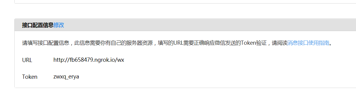 微信后台接口配置 ,此为测试账号,正式设置也是一样的