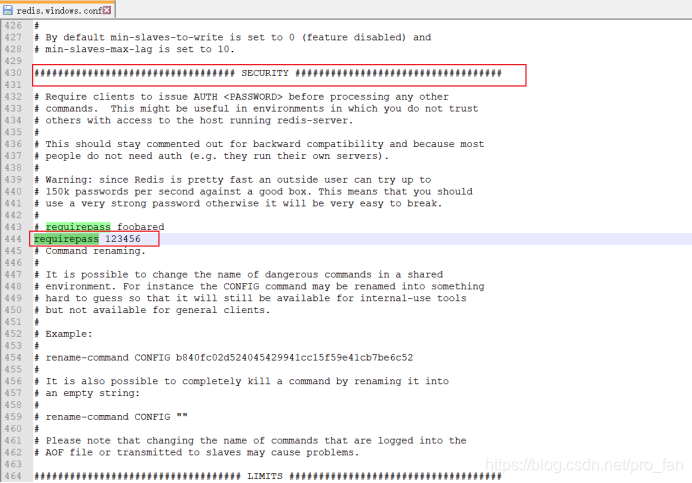 在redis.windows.conf文件中设置密码的命令中添加requirepass 123456一行,将Redis数据库的密码设置为123456