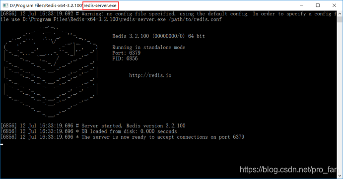 redis-server.exe redis.windows.conf其中D:\Program Files\Redis-x64-3.2.100为redis的安装路径。