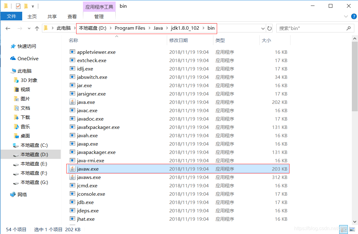 在本地计算机中找到jdk安装路径下javaw.exe文件;
