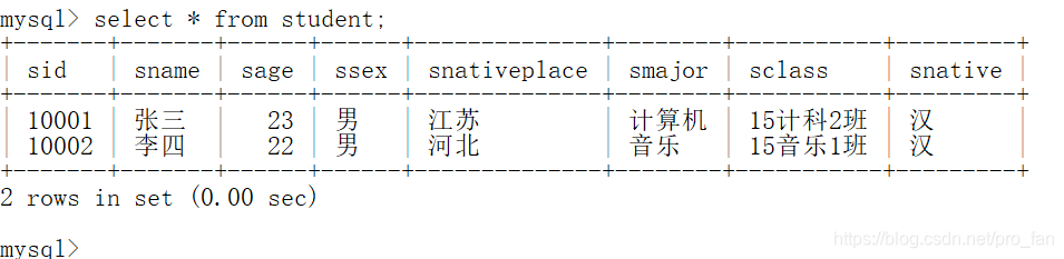 假设有一个名为test的数据库,里面有一张学生表,表名称为student,表结构如下:
