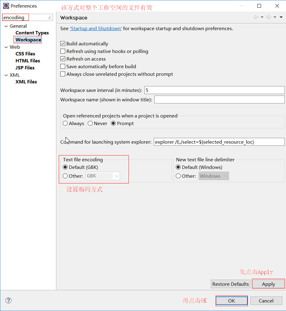 4、Eclipse设置新文件的编码方式