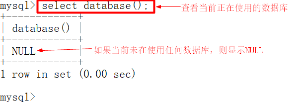 如果当前未使用任何数据库,则在database()一栏中显示NULL;