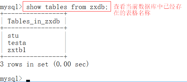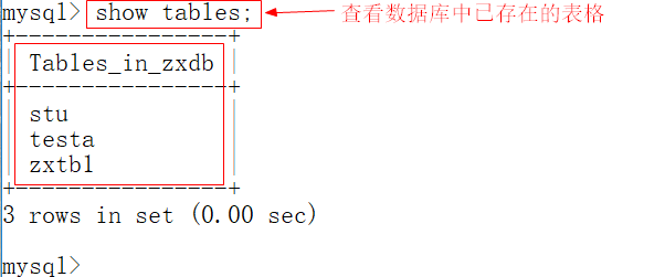 5、查看当前数据库中已经存在的表格