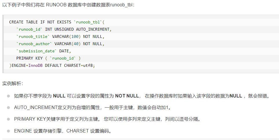 CREATE TABLE table_name (column_name column_type);创建成功会有Query OK……提示信息;如果创建失败会有error信息提示。