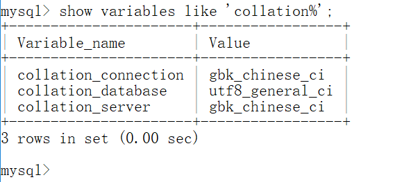 mysql> show variables like 'collation%';